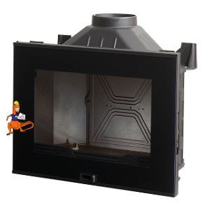 Żeliwny wkład kominkowy - 5 lat gwarancji - zgodność z normą EN 13229 - certyfikat CE - regulacja dopływu powietrza do spalania - czarne zdobienie szyby - spalanie wtórne - deflektor - popielnik - paliwo opałowe: drewno